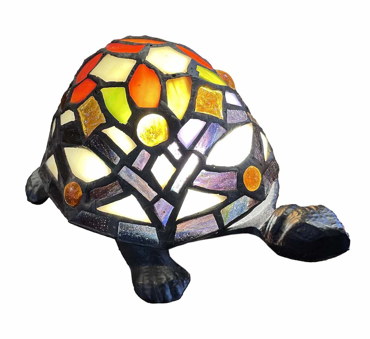 Lampada tartaruga in vetro con disegno a mosaico in lavorazione Tiffany